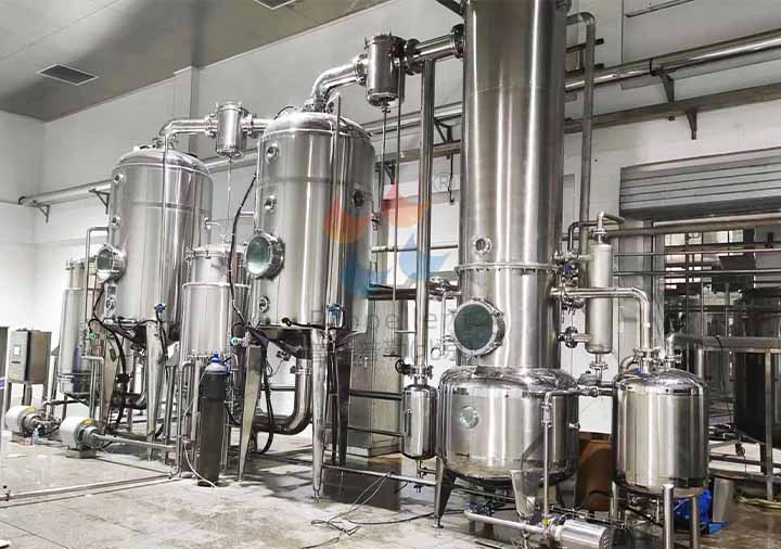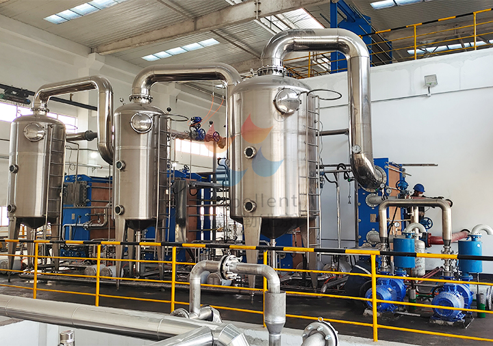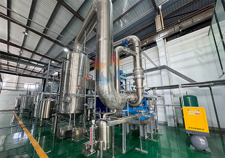 蔗糖糖漿來自泡豆工序,糖漿置換出豆子內(nèi)的水分,糖漿濃度下降, 需要再次濃縮,從60°BX濃縮到70°BX。 ? ? ? 普瑞普勒采用二效逆流蒸發(fā)濃縮方式,間歇化生產(chǎn),滿足后續(xù)糖漿 使用不堆積,總蒸發(fā)水量2t/h。半自動控制,能完成MCS控制、安全監(jiān) 控、報警等,確保裝置安全高效穩(wěn)定運行。 ? ? ? 該系統(tǒng)設(shè)計把汁汽、冷凝水熱量余熱回收考慮在內(nèi),節(jié)約能耗。