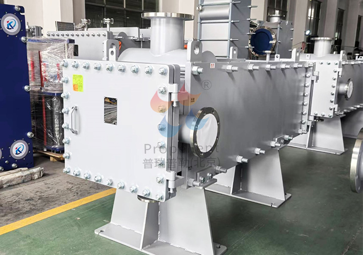 普瑞普勒鉆井液冷卻處理系統(tǒng)是一種高效的閉式循環(huán)系統(tǒng),核心設(shè)備包括寬流道板式換熱器、空冷器/制冷機組以及機泵等。其寬流道板式換熱器,不僅換熱效率高,流通順暢,能有效處理高溫鉆井液。